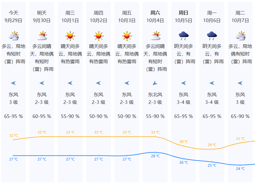 ●东部景区预定通行系统曾经国庆假期预定,局地有短时(雷)阵雨;南海和西承平洋有1~2个台风生成。
